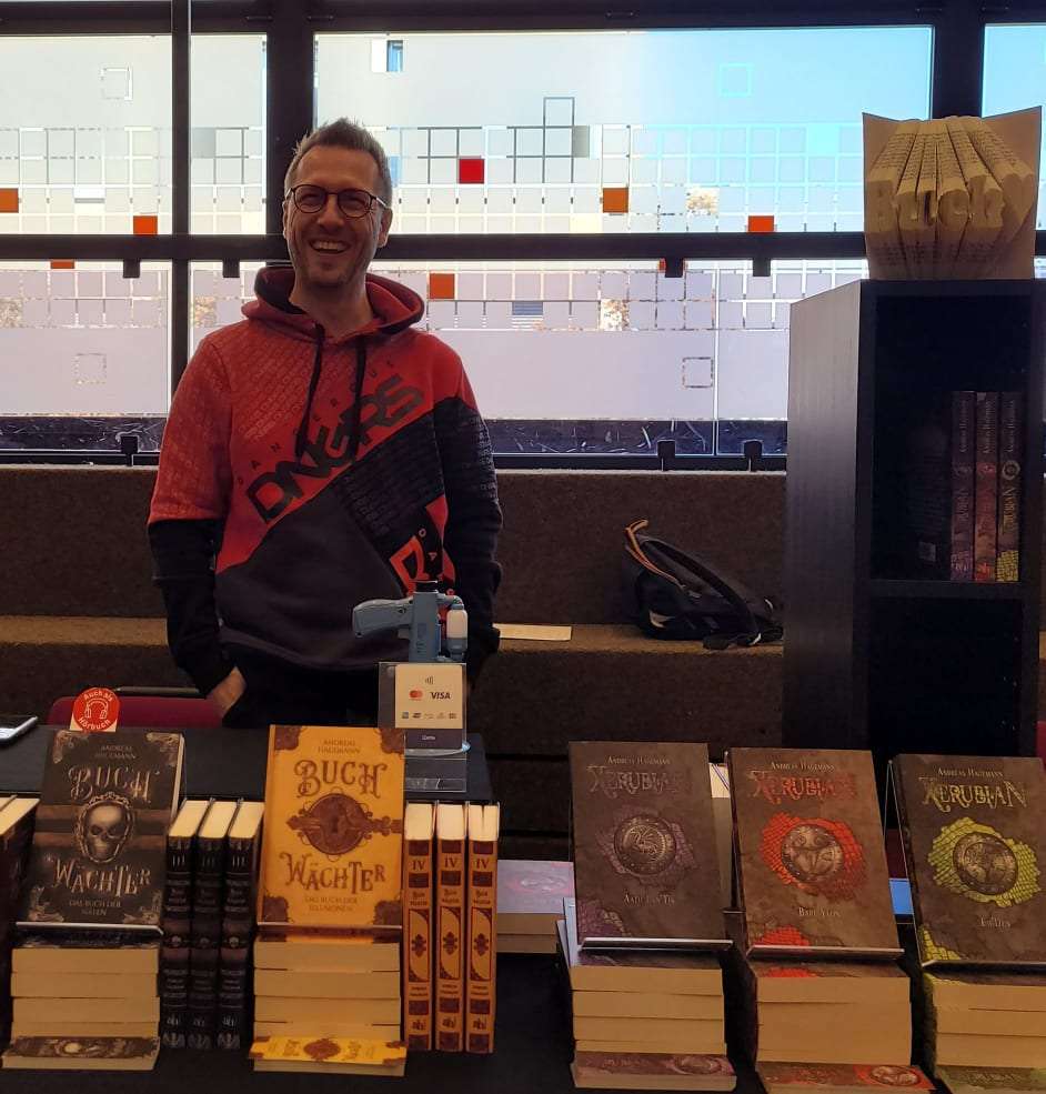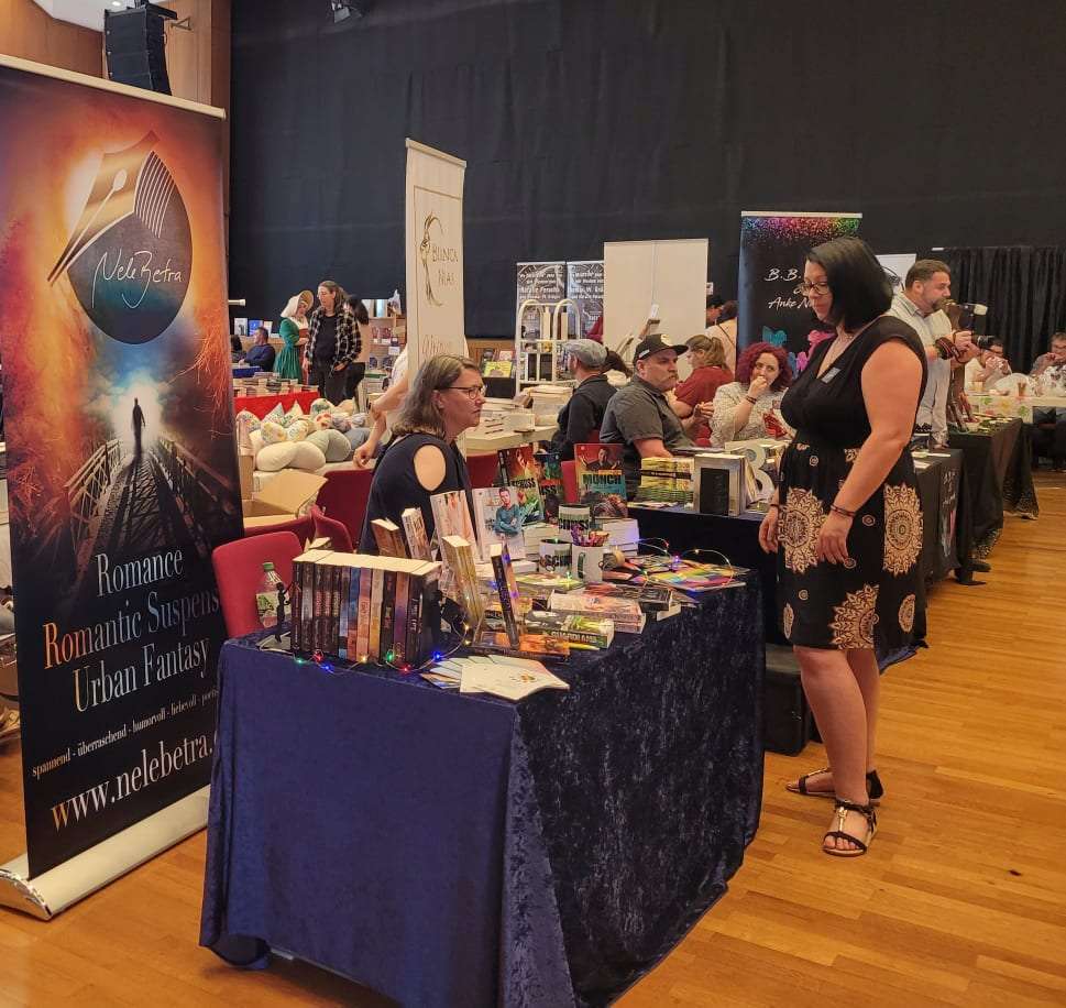 Die Halle war gut ausgebucht, die über 50 Aussteller bestens gelaunt und deren Sortiment ließ auch keine Wünsche offen. Neben klassischen Liebesromanen, High Fantasy, Gay Romance, Krimi und Thriller sowie History reichte die Auswahl über Kinder- und Jugendbüchern bis hin zu Sach- und Fachbüchern. Neben Büchern selbst gab es noch allerlei Buchzubehör wie Lesekissen, Lesezeichen und dergleichen.